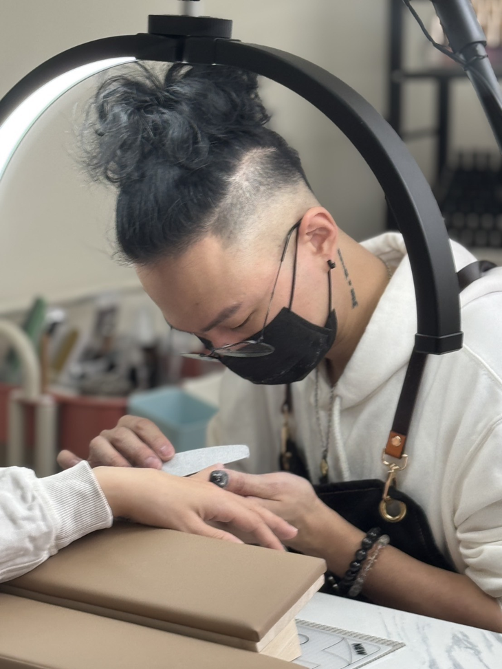 〈消毒 + 甲面清潔 + 指緣軟化 + 甘皮處理 + 修磨指緣硬皮 + 指甲修型 + 甲面拋磨 + 凝膠底層 + 凝膠上色(單色/貓眼/雙色/璀璨/碎鑽蹦迪 五選一) + 任選二指造型(12選2搭配;金箔/幻彩亮片/閃亮小鑽/極光粉/金屬石/各式貼紙/鉚釘/礦珠/珍珠/金鑽粉) + 凝膠指甲封層 + 指緣保濕修護〉