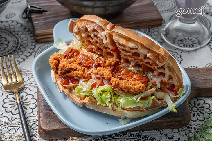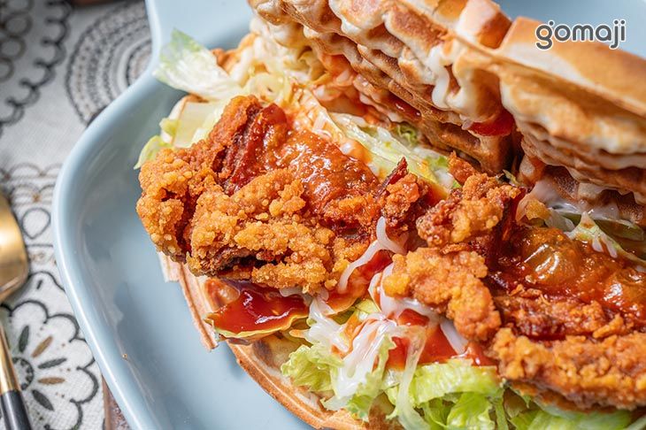 這款料理融合了香辣酥脆的卡啦雞與香甜鬆軟的鬆餅本體,鹹甜衝擊味蕾,讓人充滿驚喜。第一口咬下時,外皮酥脆的卡啦雞立刻釋放出辣中帶香的風味,隨之而來的是鬆餅的微甜香氣,兩者在嘴裡交融,卻又不搶戲,彼此襯托,形成一種特殊而迷人的平衡感。辣味不嗆,但尾韻帶勁,吃得出層次感,會讓人忍不住一口接一口。這樣的搭配,不僅滿足鹹食控,也讓甜點派驚艷不已。