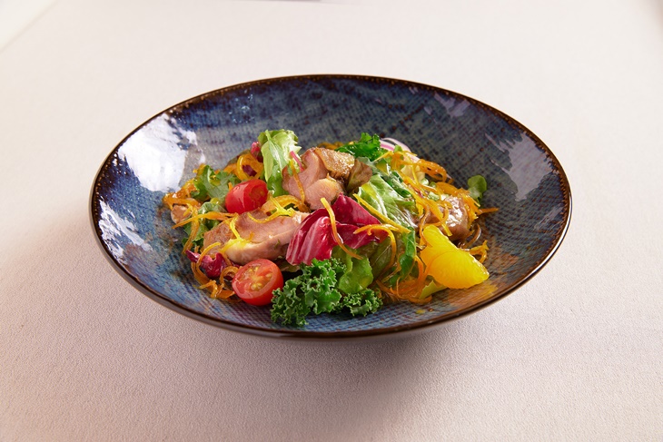 主廚運用精湛的技巧,以細刀將鴨皮劃開後乾煎,逼出鴨油,再加上白蘭地包覆後微火慢熱,淡雅的白蘭地香氣飄散,迷人的香氣勾人味蕾!帶有粉嫩色澤且無鴨腥味,擁有香嫩多汁的絕佳口感,其香氣在口中繚繞,越咀嚼香氣越濃,每一口都令饕客們讚嘆不絕!