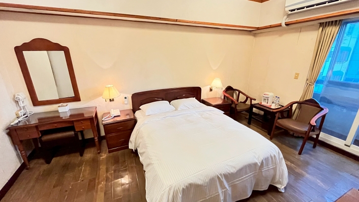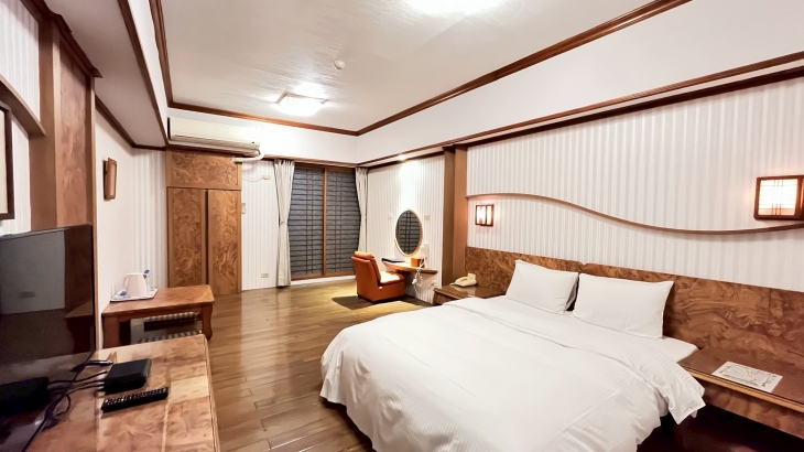 以溫暖、柔和、雅緻的色調鋪陳,帶著些許復古韻味與沉穩氛圍。無論是哪個房型,都展現出寬敞、整潔、安定的住宿感受,讓人一進門就自然放鬆。米杏色牆面搭配木質家具與暖黃燈光,營造出溫馨、靜謐又不失親切的休憩氣息;部分房型更添一抹浪漫與活潑感,讓整體空間多了幾分輕鬆自在,很適合想要簡單休息、舒服過夜的旅人。