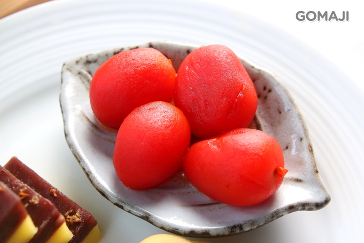 選用台灣在地原生聖女蕃茄,去皮取果肉浸泡天然發酵的梅醋,酸酸甜甜、清爽開胃,當作前菜品嚐再適合不過了。