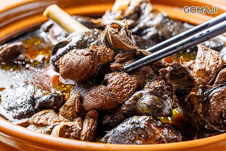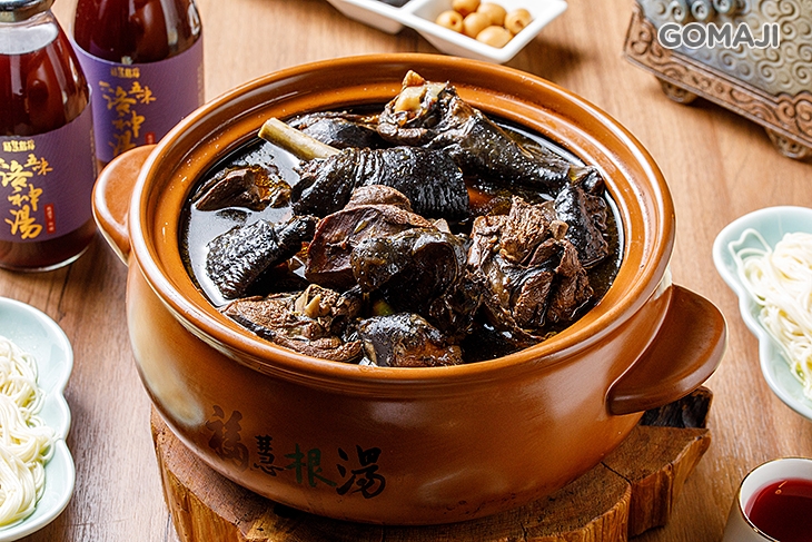 使用50年生藥材,細火慢熬而成,含有豐富蛋白質與膠原蛋白,性溫質醇,烏骨雞肉質紮實鮮美伴隨著鹹香雞汁在口中迸發,醇香溫潤的迷人風味,可是進補的首選!