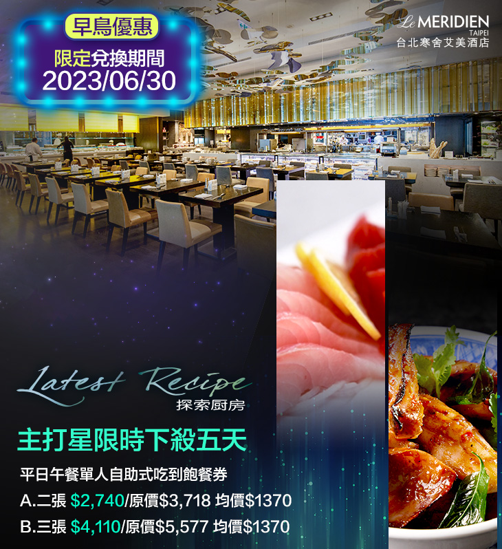 [即期優惠餐券](限定兌換期間至2023/06/30)主打星限時下殺五天!平日午餐單人自助式吃到飽餐券(週一至週五午餐)