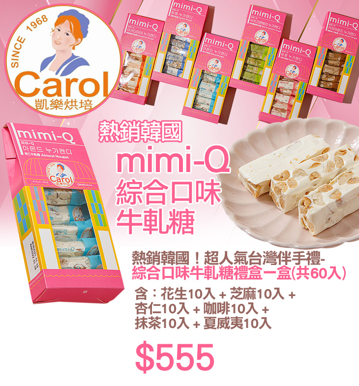 超人氣推薦!嚴選紐西蘭奶油、奶粉等原料,並注重低糖高鈣健康概念,以豐富經驗調合成黃金比例,製作出令人迷戀的好味道。多種口味的香濃牛軋糖,一次滿足所有人的味蕾,香甜不黏牙的口感,與濃厚的台灣人情味交織融合,縈繞舌尖,加上粉嫩可愛的包裝,無論送禮或自用都合適!熱銷韓國的經典美味,麻吉們怎能錯過!