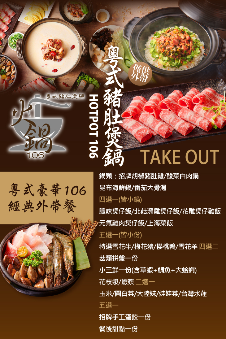 邀請您一同來享用美味時尚又兼顧養生的鍋物料理!火鍋106徹底顛覆消費者的觀念,強調火鍋的精華,就是湯頭本身,不僅好喝,更是養生~最重要的是,充滿營養,卻不會過於躁熱、油膩的湯頭,即使天天喝都不會感到膩,可以一滴不剩、從頭喝到鍋底露面的湯底,才能真正享用每一分的精華滋味!此外,店內挑選上好新鮮的食材,在燉煮的過程中,不僅原始的風味不會被湯頭蓋掉,在品嚐食材原味的同時,還能感受到湯頭的溫潤香醇和食材彼此相輔相成,形成味濃鮮美、芬芳滿溢的絕妙滋味~這,才是真正的〝吃火鍋〞!