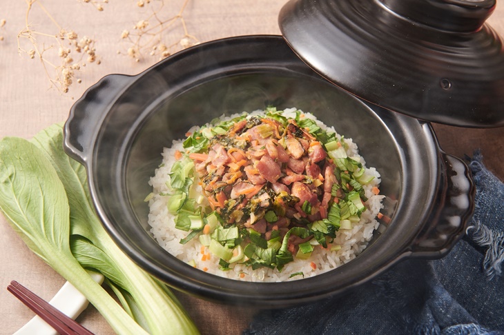 鹹香夠味的臘味煲仔飯,油亮油亮的食材嚐在嘴裡卻不膩口,而且越嚼越帶勁!各式食材在鍋中舞動、交織,醬汁更渲染出誘人色澤,令人口水直流!