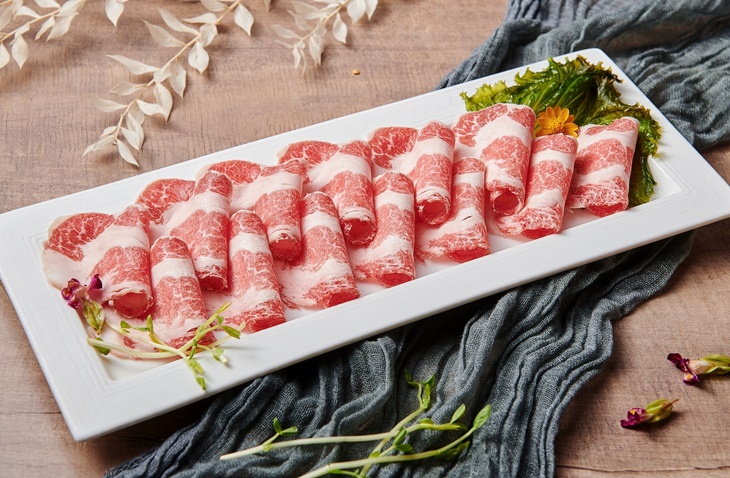 店家選用油脂較豐富的特選雪花牛,鮮嫩艷紅的色澤與漂亮油花,入鍋涮煮,讓甜美高湯的清香滋味,吸附在軟嫩的肉片中,又軟嫩又好吃!