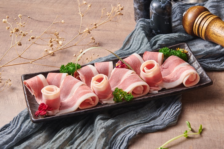 美麗整齊的油花一字排開,粉嫩的色澤令人食指大動,入鍋輕涮幾下即可入口,Q嫩滋味熟嫩得恰到好處!吸滿湯汁又有著肉汁的自然鮮甜,實在超好吃!