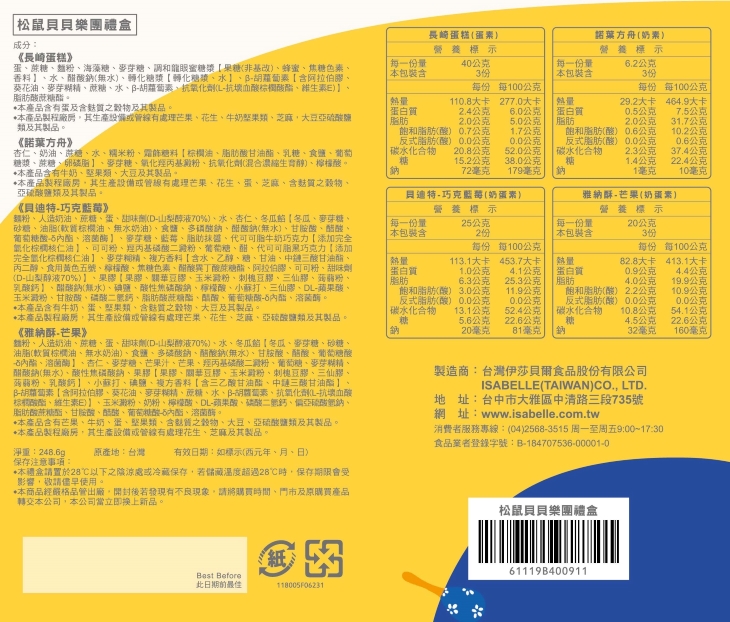伊莎貝爾自開創以來,從食材、烘焙、生產到包裝,每道工序、細節層層把關,承諾提供消費者美味又安心的餅乾、糕點!