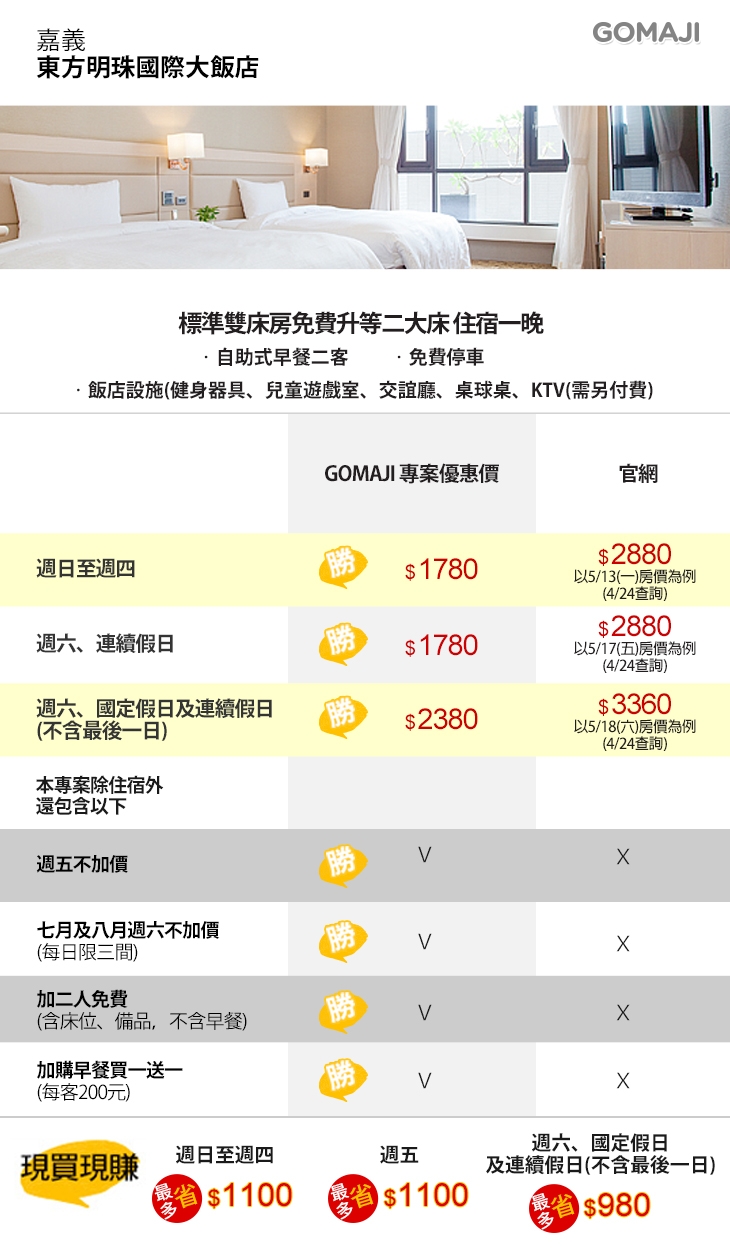 【嘉義-東方明珠國際大飯店】感謝麻吉們熱烈搶購,已全數賣光光。