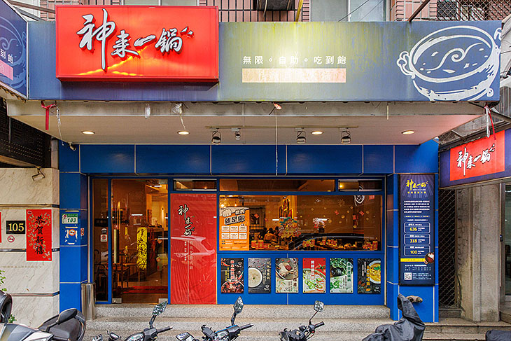 〈特別推薦:獨門湯頭(神來麻辣鍋、神來花雕雞、扁魚沙茶鍋、黃金咖哩鍋、美顏蕃茄鍋、田園鮮蔬鍋、香菜皮蛋鍋)、上等肉品(上等五花牛、特選培根豬、台灣梅花豬、上等雪花羊、安格斯牛背肩、招牌花雕雞)、各式嚴選海鮮(花枝漿、蝦仁漿、南美白蝦、文蛤、鱈魚肚)、精選火鍋料、特選蔬菜、主食、飲料吧、水果、明治及杜老爺冰淇淋無限供應〉