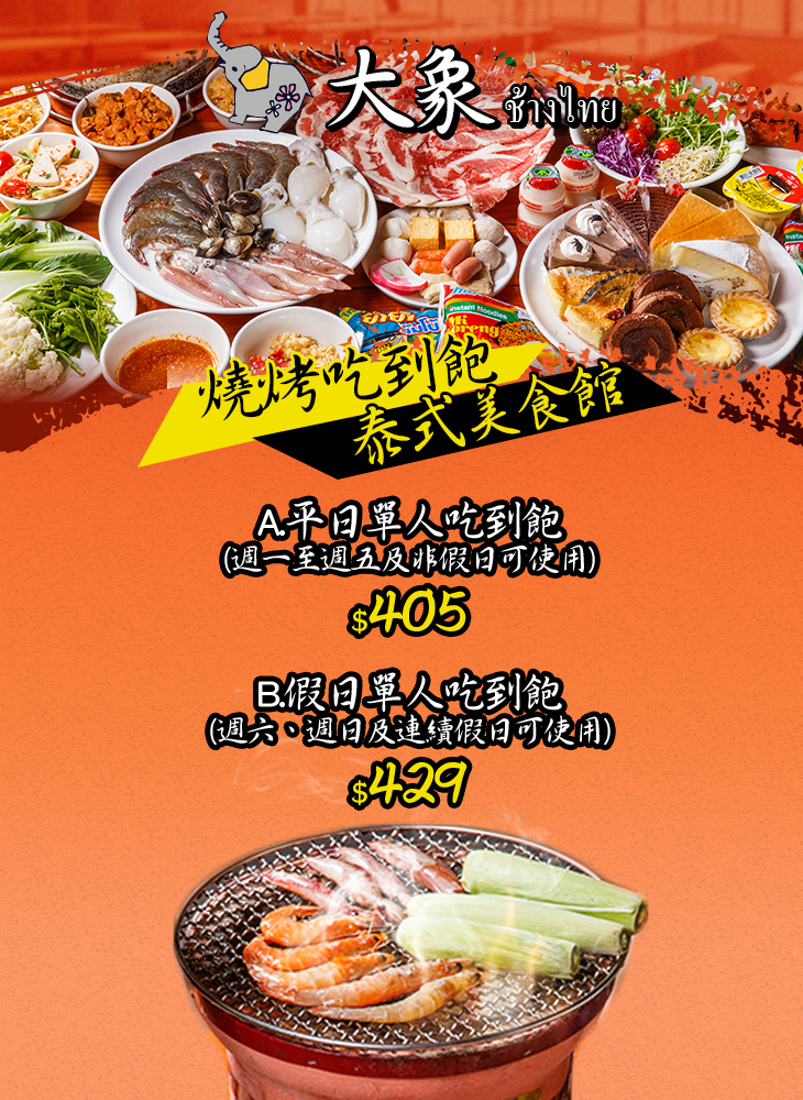 更多 【大象泰式美食館燒烤吃到飽】商品