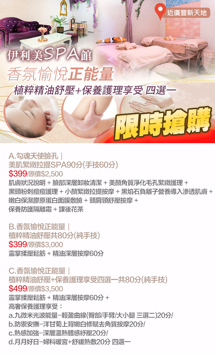 【伊利美SPA館】感謝麻吉們熱烈搶購,已全數賣光光。