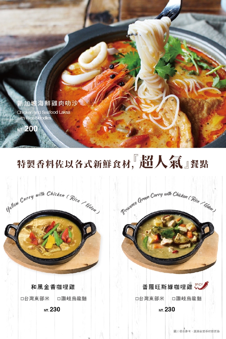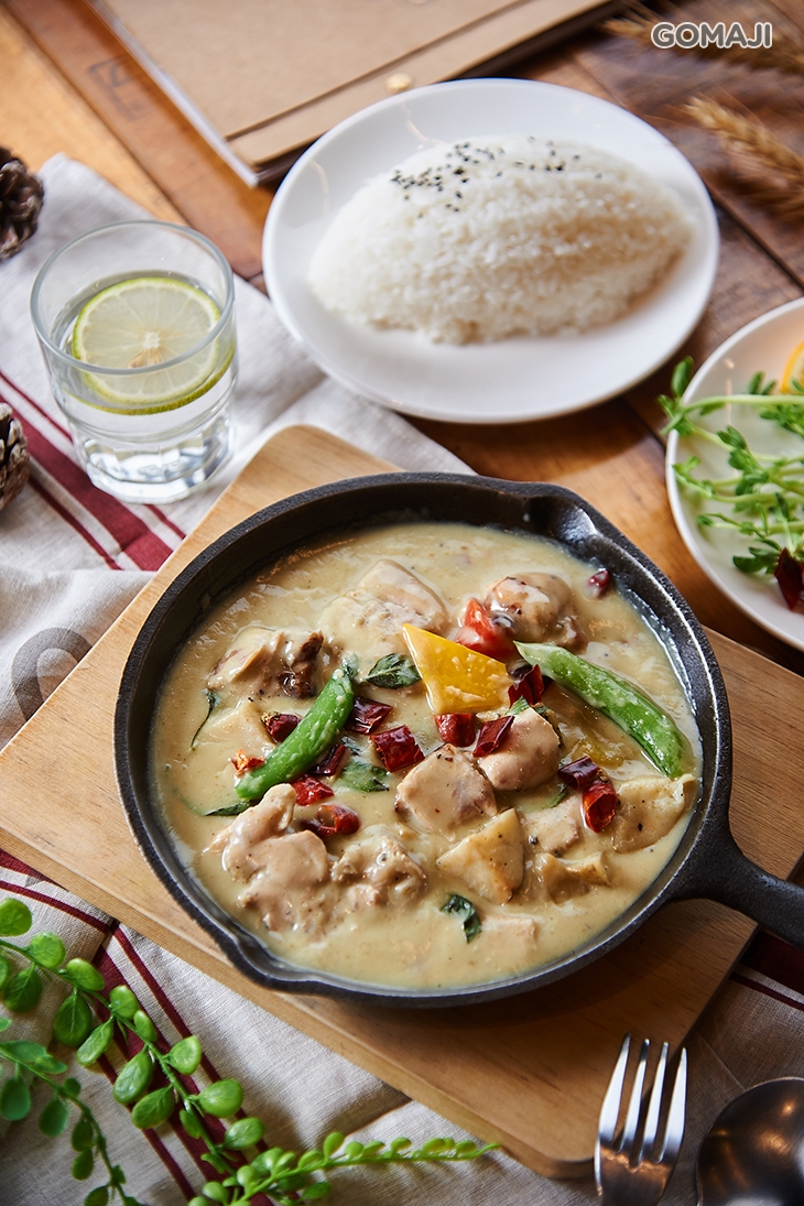 香醇濃厚的綠咖哩雞,一端上桌,迷人香氣便撲鼻而來,讓人忍不住垂涎三尺,趁熱品嚐,先是綠咖哩獨特的香料氣息交織著椰奶的溫潤醇厚在味蕾綻放,接著酥麻刺激的辛辣緩緩爬上舌尖,兩者風味誰也不搶誰的風采,彼此相襯,成就一道令人回味無窮的絕品佳餚!