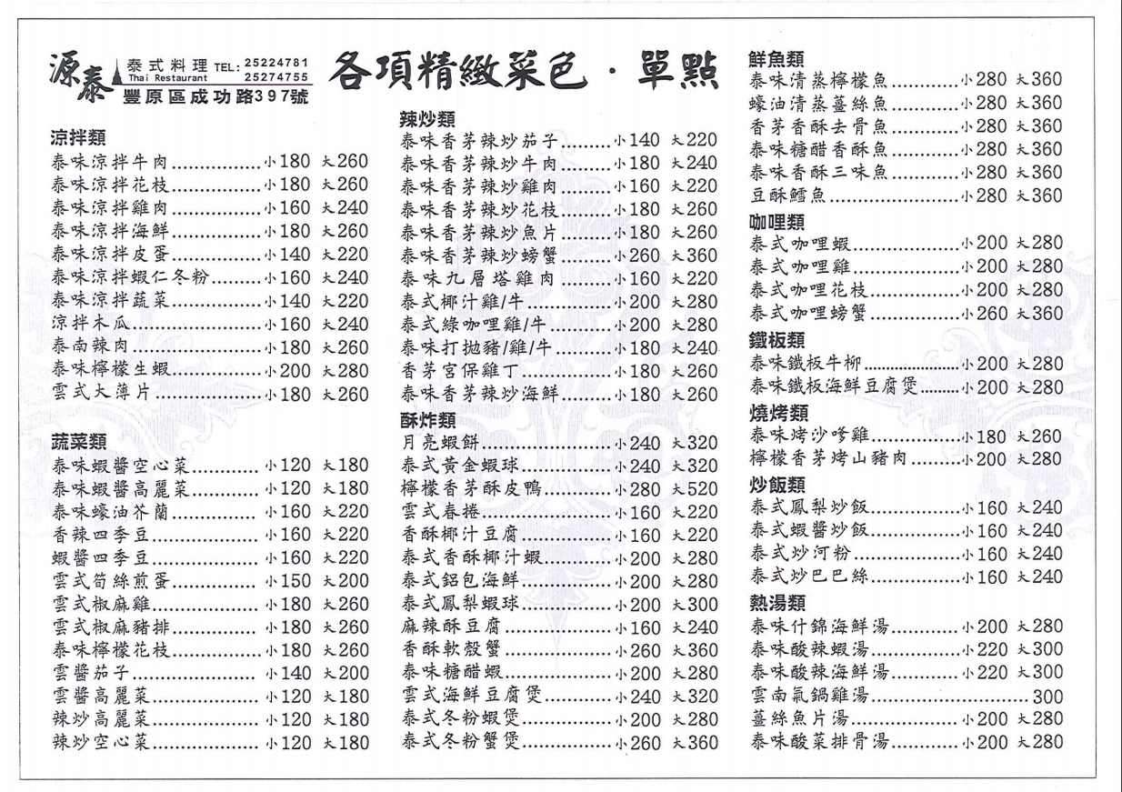 近年來泰國料理在台灣十分盛行,對於異國料理的接受度也相當的高,從泰式熱炒到泰式餐廳一間間如雨春筍的開立,酸、甜、鹹、辣豐富具層次感的味蕾體驗,頗受台灣人歡迎與喜愛。然而,也擁有美食天堂之稱的台中,在豐原區成功路上開了一間道地又到味的泰式料理餐廳,名為【源泰泰式料理】。餐點提供以傳統道地的泰式料理為主,從涼拌、辣炒、酥炸到燒烤......等各式各樣的菜色變化,讓顧客從道道美食中更進一步認識泰國飲食文化。食材嚴選、製作用心、品質講究,將家鄉味的精髓融合臺灣喜愛口味完美呈現!本次與GOMAJI聯合推出麻吉獨享超超超値優惠,聚餐、吃飯,地點還沒想到嗎?趕緊下載GOMAJI APP搜尋台中必吃異國料理餐廳,來【源泰泰式料理】好好品味一番吧!