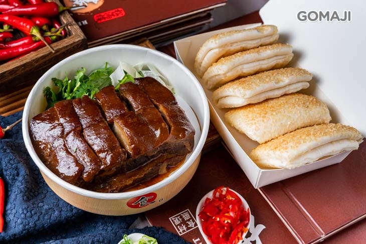 嚴選新鮮豬肉,半肥半瘦精華部位,搭配獨門滷汁,每日費時烹煮,將豬肉滷得上色又入味,油潤光滑的豬皮,擁有ㄉㄨㄞㄉㄨㄞ、Q彈的口感,入口脂香濃郁、富有滿滿膠質。搭配鮮美鹹香的肉質,每一口都堪稱經典中的經典啊!