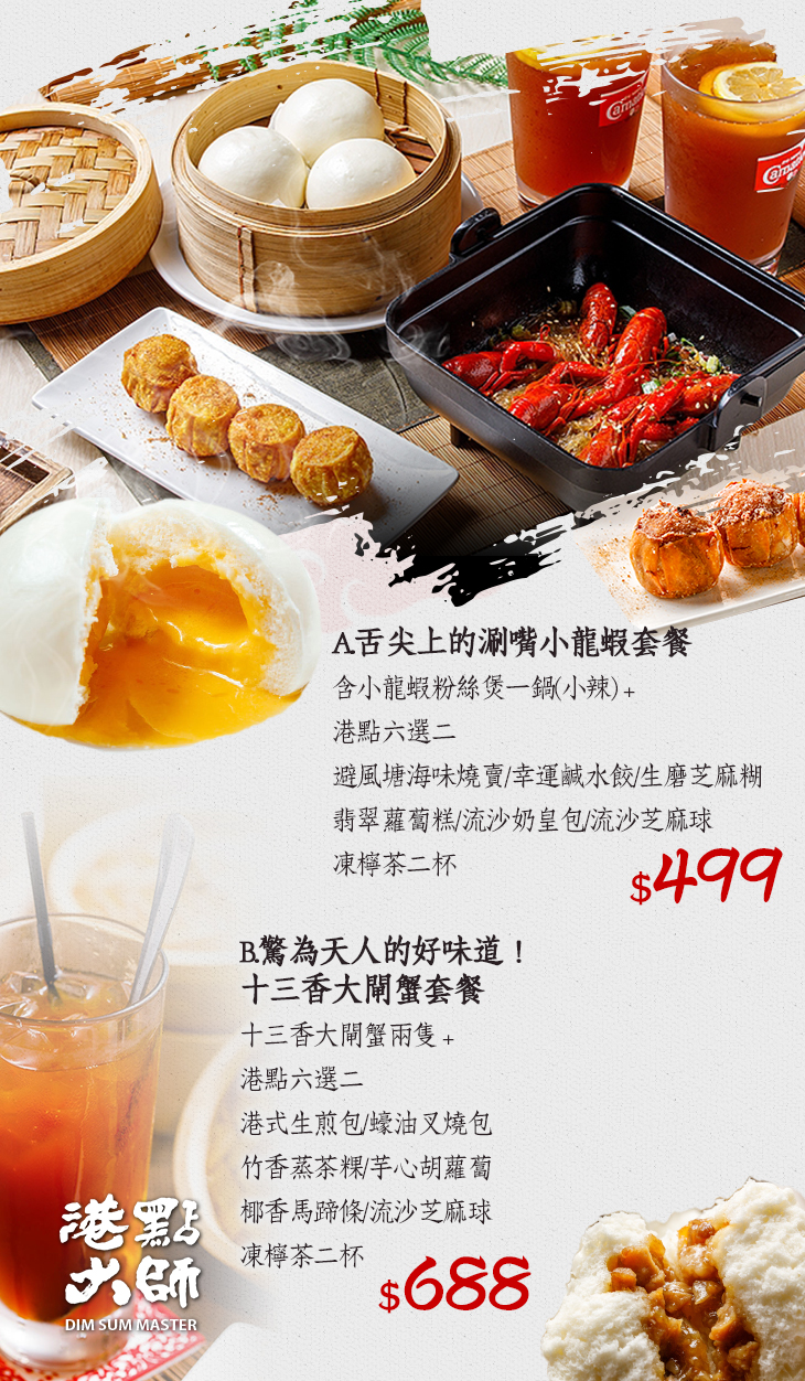 大閘蟹,重磅登場啦!嚴選上等大閘蟹,以蒸籠蒸煮的方式料理,不僅能保有蟹肉的鮮美,更能展現【港點大師】真材實料、正港用料的誠意與新鮮。