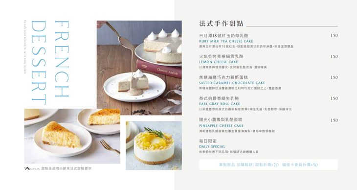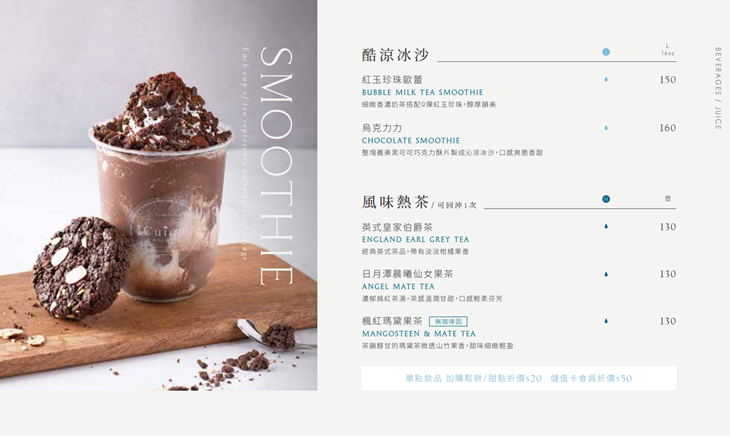 以茶感豐厚的英式伯爵茶製成潤澤Q綿生乳捲,乳香醇厚、茶韻深沉。