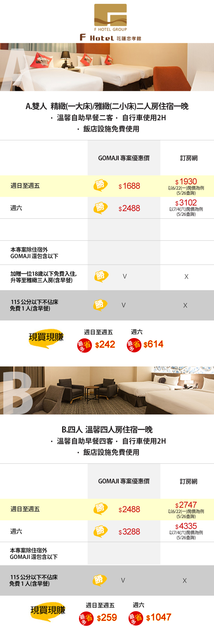 【F HOTEL 花蓮忠孝館】感謝麻吉們熱烈搶購,已全數賣光光。